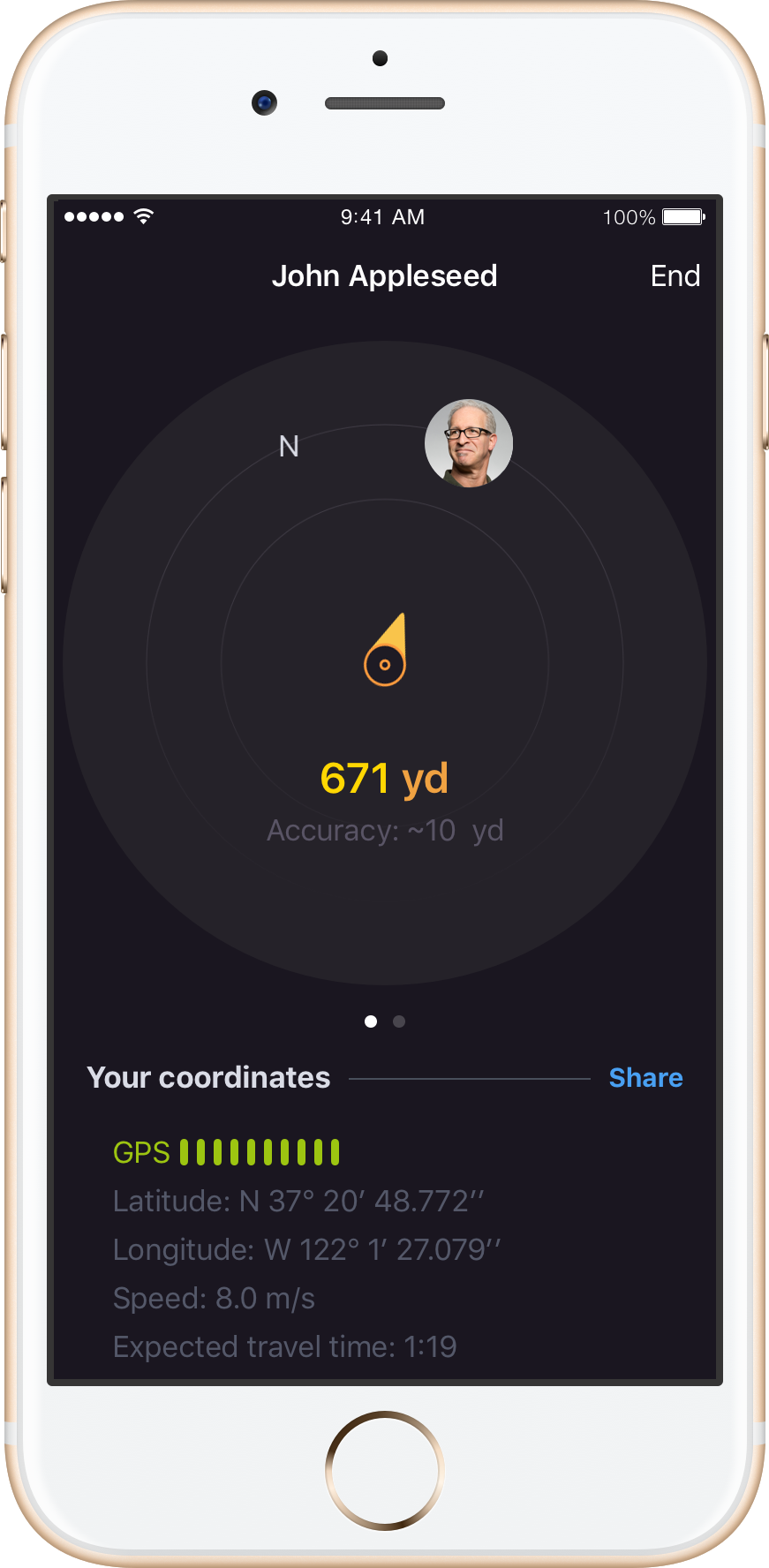 Ne vous perdez plus en essayant de localiser vos amis sur une carte. Suivez simplement la flèche.