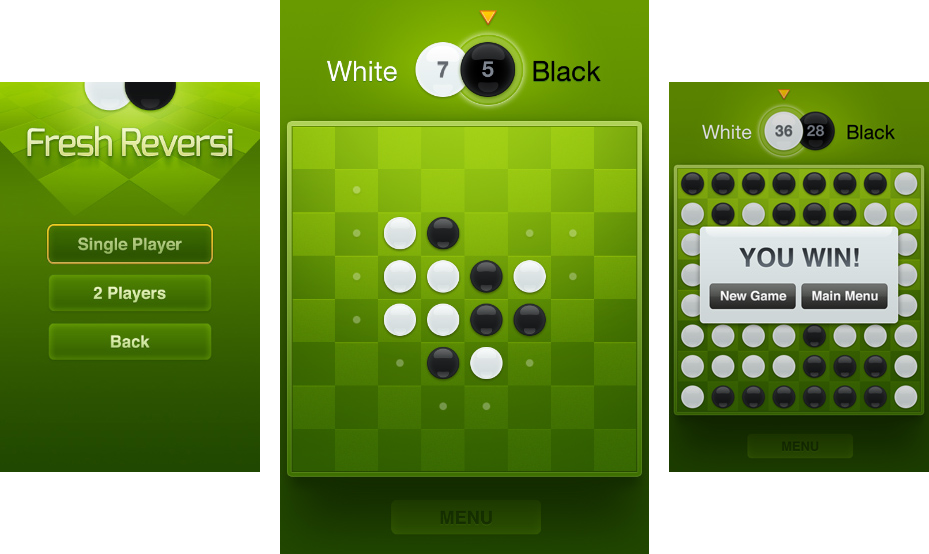 With Fresh Reversi, you can play alone versus the computer or against your friends on iPhone or iPad.